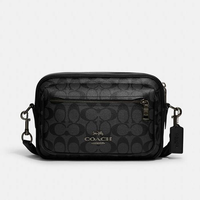 Coach Elias Crossbody In Signature Canvas - Gunmetal/Charcoal/Black Coach 經典印花帆布配小牛皮斜揹包
