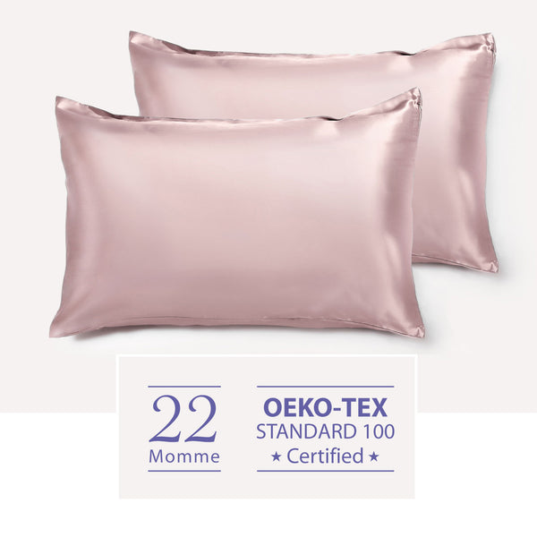 - 粉紅色22姆米美肌真絲枕頭套兩個裝