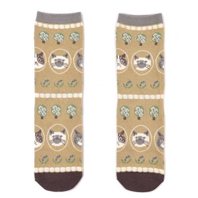Kusuguru Cat Pattern Cotton Socks - Yellow Kusuguru純棉貓咪圖案提花襪子 - 黃色
